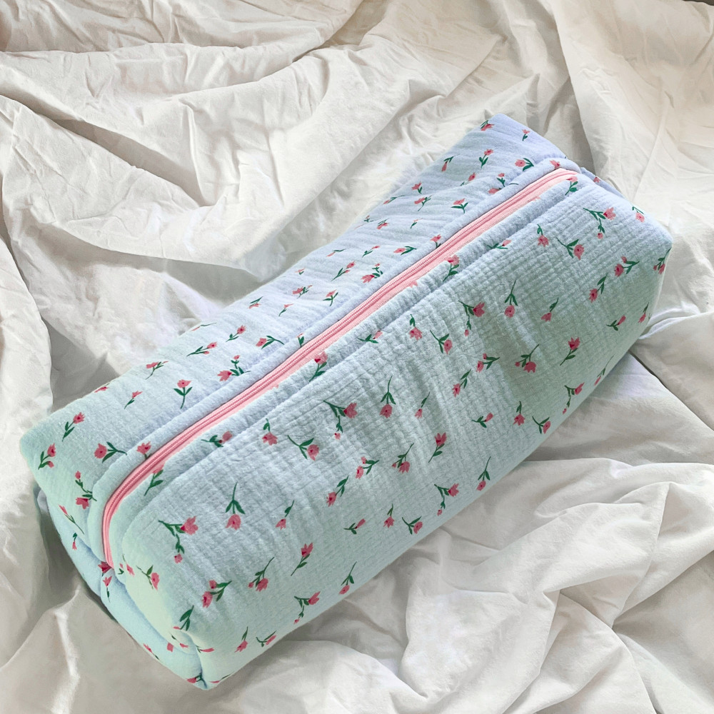 Light Blue Floral Makeup Bag