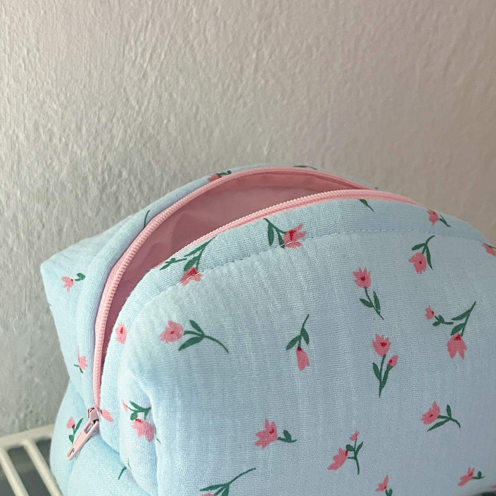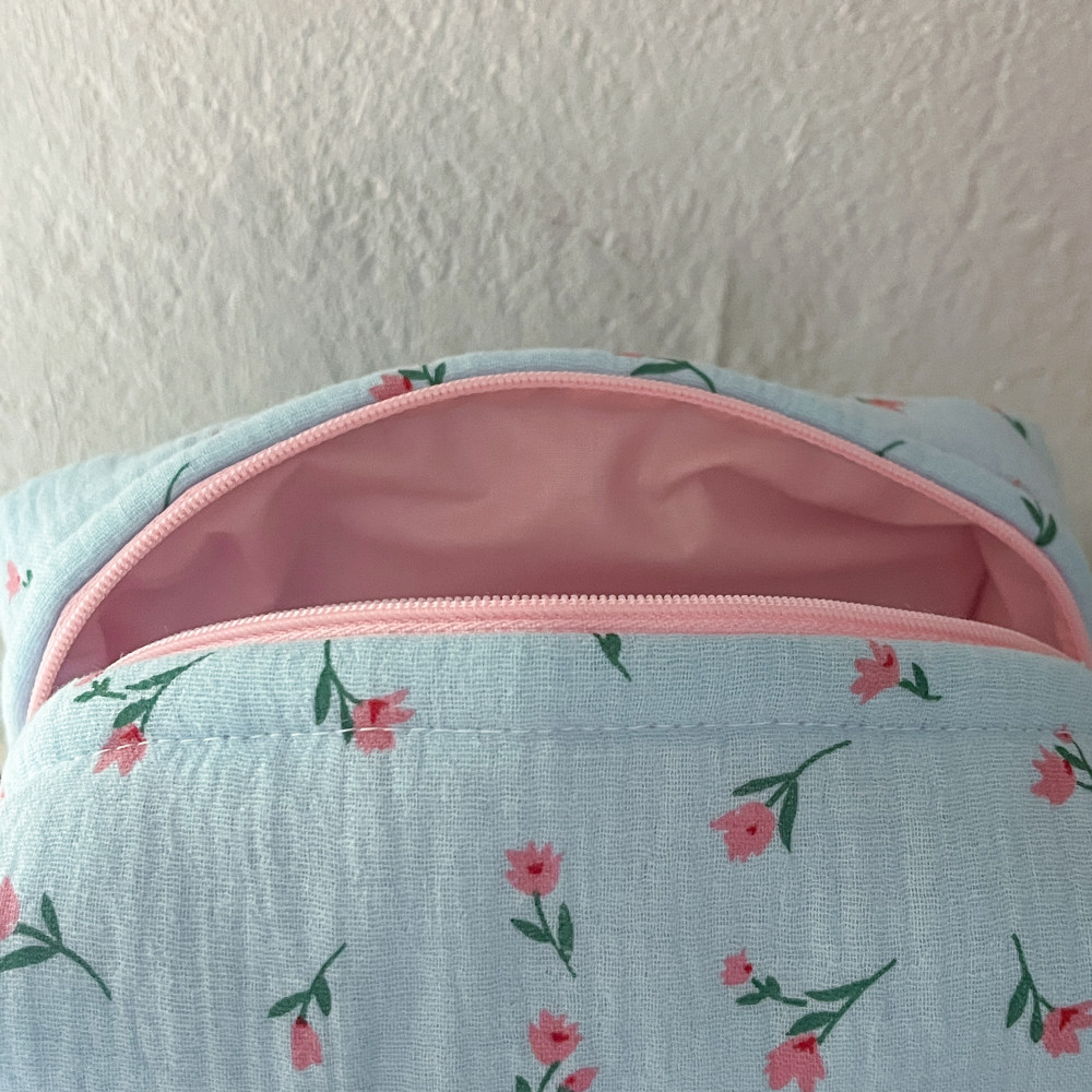 Οργάνωσε τα essentials σου με το Light Blue Floral Makeup Bag, το χειροποίητο νεσεσέρ από 100 % βαμβάκι, προσεκτικά ραμμένο στην Ελλάδα. Ελαφρύ αλλά ευρύχωρο, φιλοξενεί foundation, κραγιόν, πινέλα, skincare και ο,τιδήποτε άλλο χρειάζεσαι στη καθημερινότητα σου, σε ένα μόνο pouch.