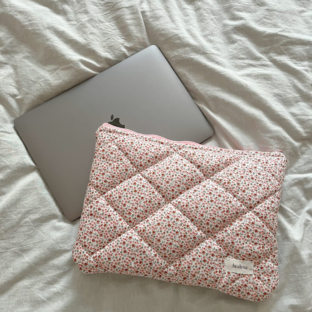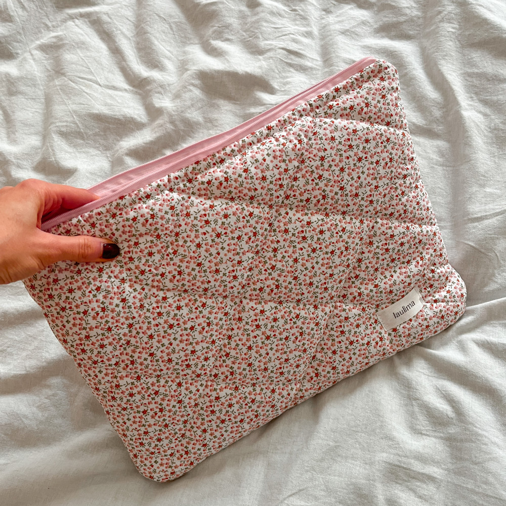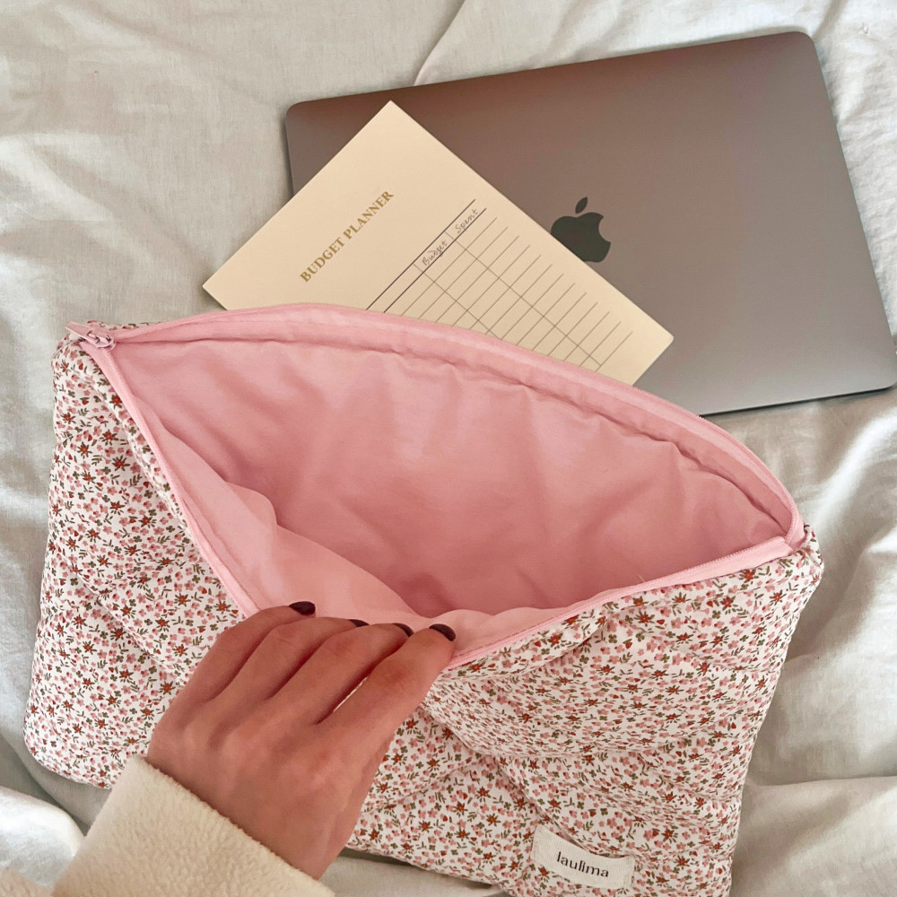 Κράτησε το laptop σου ασφαλές και κομψό με τη Pink Floral Laptop Case. Φτιαγμένη στο χέρι από 100% βαμβακερό ύφασμα και αφρώδες ενισχυτικό στο εσωτερικό, συνδυάζει ελαφριά προστασία και διαχρονικό design για δουλειά, σπουδές ή ταξίδια.