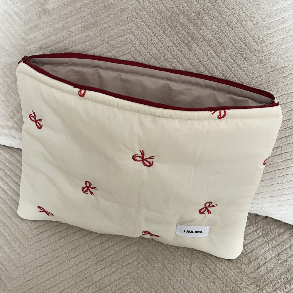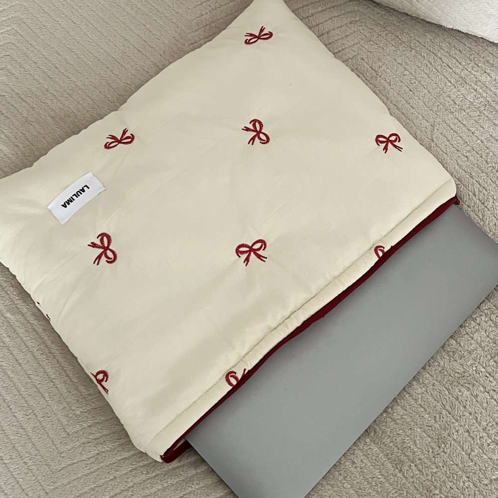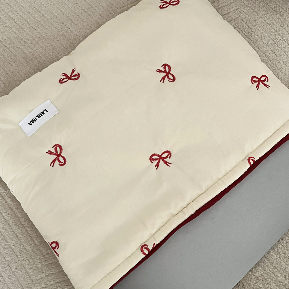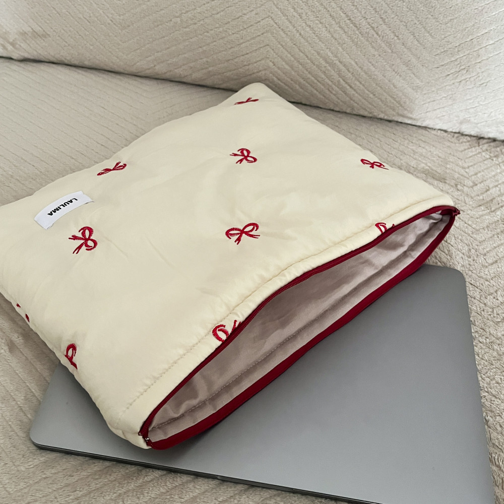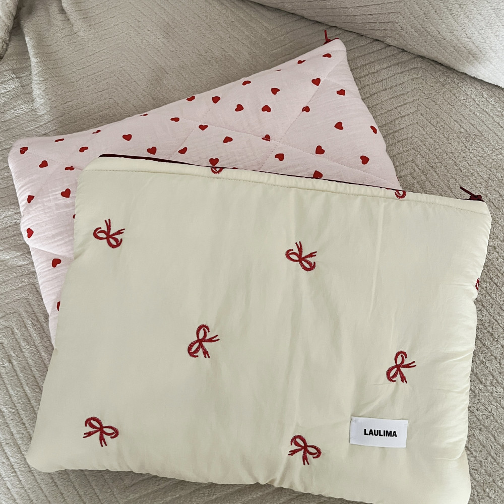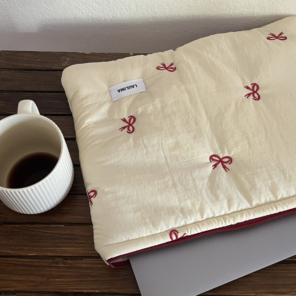 Κράτησε το laptop σου ασφαλές και κομψό με τη Red Bows Laptop Case. Φτιαγμένη στο χέρι από 100% βαμβακερό ύφασμα και αφρώδες ενισχυτικό στο εσωτερικό, συνδυάζει ελαφριά προστασία και διαχρονικό design για δουλειά, σπουδές ή ταξίδια.