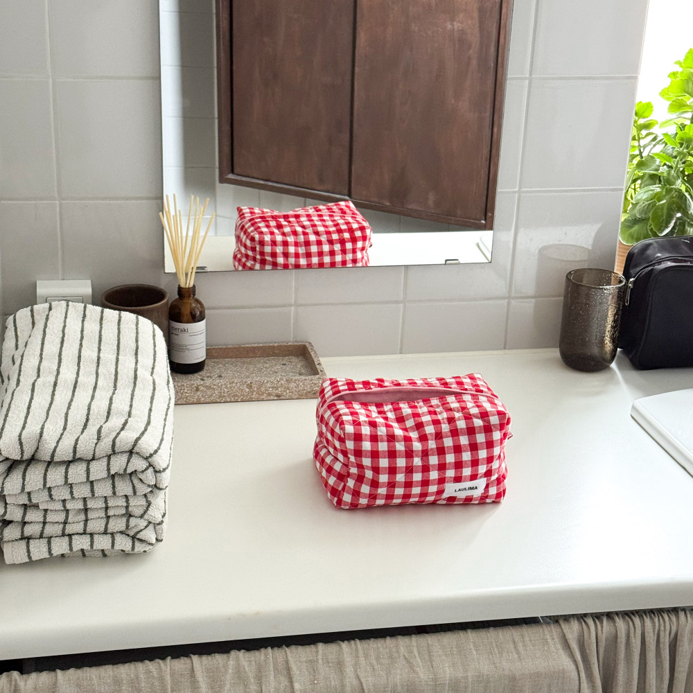 Οργάνωσε τα essentials σου με το Red Gingham Makeup Bag, το χειροποίητο νεσεσέρ από 100 % βαμβάκι, προσεκτικά ραμμένο στην Ελλάδα. Ελαφρύ αλλά ευρύχωρο, φιλοξενεί foundation, κραγιόν, πινέλα, skincare και ο,τιδήποτε άλλο χρειάζεσαι στη καθημερινότητα σου, σε ένα μόνο pouch.