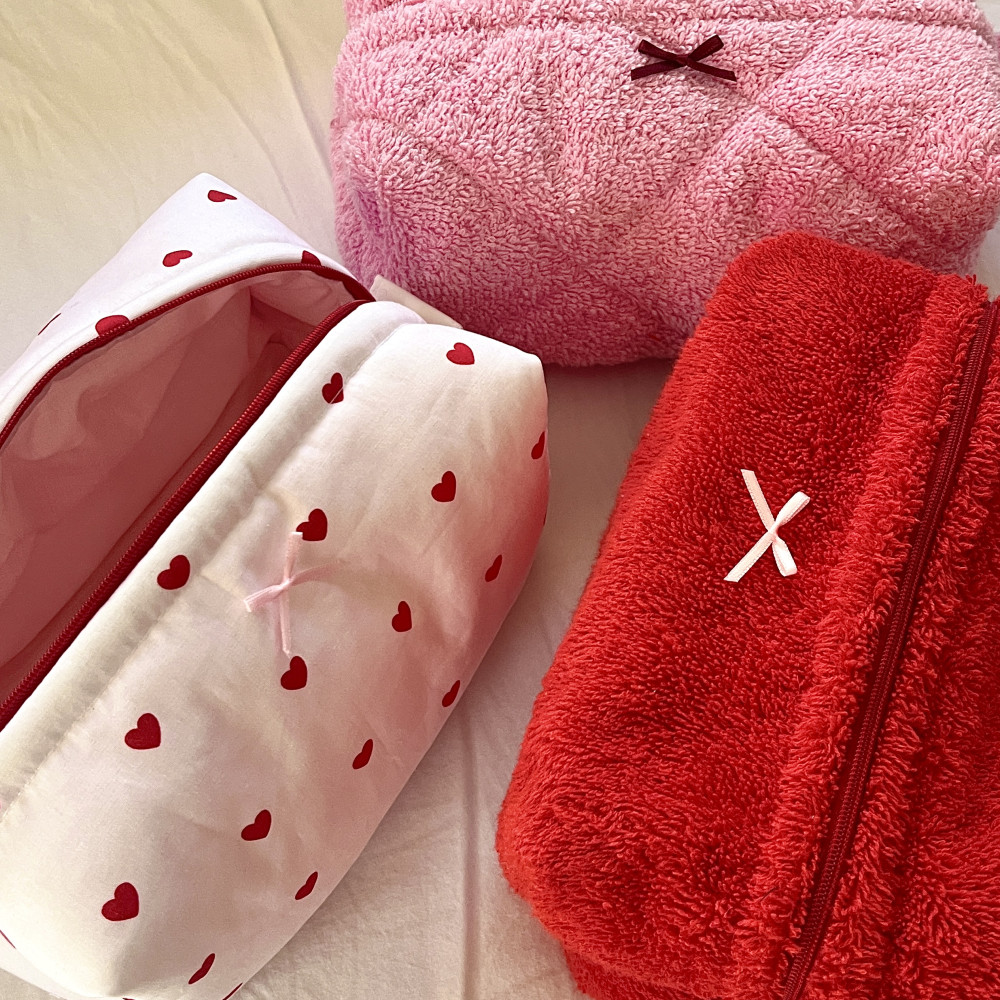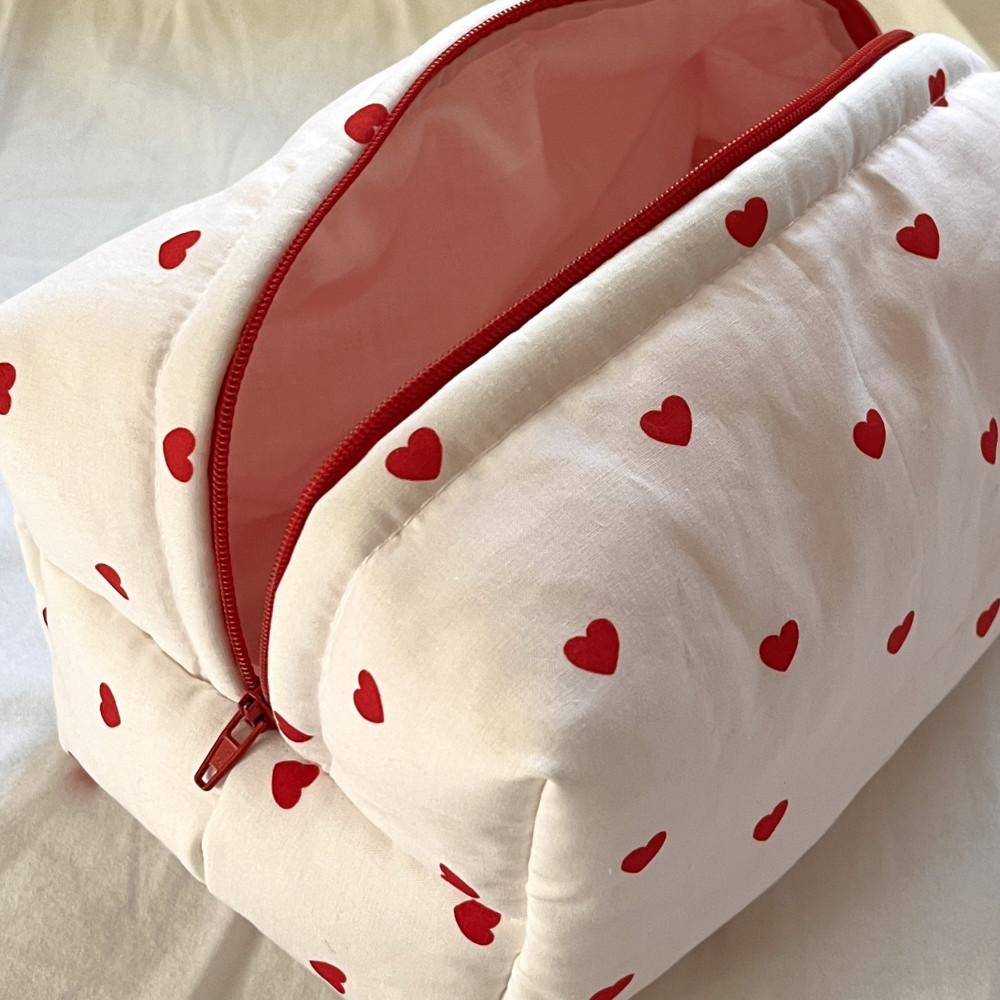 Χειροποίητο νεσεσέρ από βαμβακερό ύφασμα με καρδιές , ιδανικό για καλλυντικά, ταξιδιωτικά αντικείμενα ή μικρά αξεσουάρ.