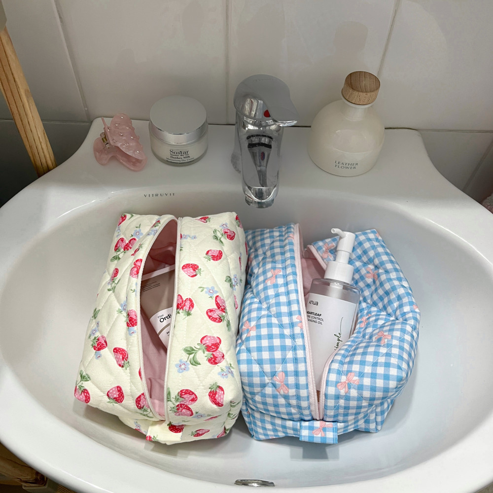 Οργάνωσε τα essentials σου με το Strawberries Makeup Bag, το χειροποίητο νεσεσέρ από 100 % βαμβάκι, προσεκτικά ραμμένο στην Ελλάδα. Ελαφρύ αλλά ευρύχωρο, φιλοξενεί foundation, κραγιόν, πινέλα, skincare και ο,τιδήποτε άλλο χρειάζεσαι στη καθημερινότητα σου, σε ένα μόνο pouch.